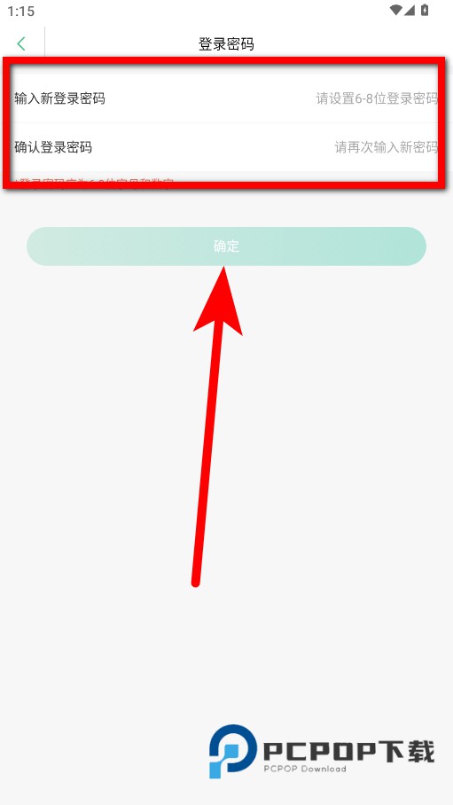 4、在登录密码页面,输入新登录密码并确认,然后点击确定,即可完成登录密码设置。