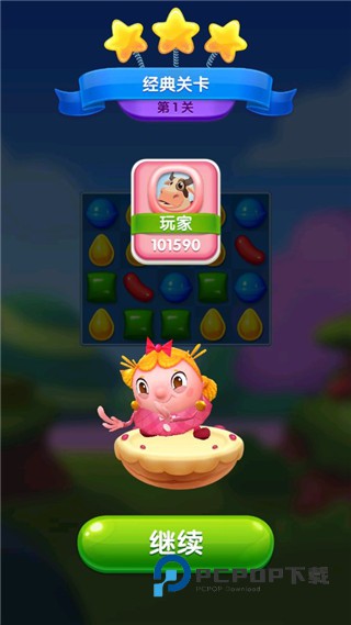 2、这是一款全新的糖果三消游戏,在这里你需要利用你的一切手段来完成不同的挑战。