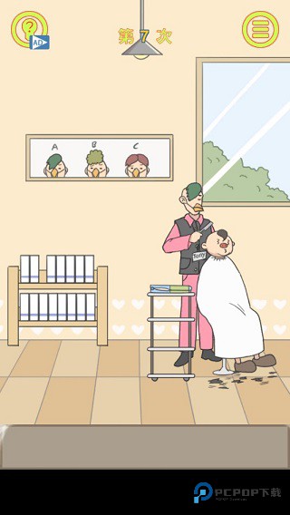 第7关:拿到架子上的卷发棒,将卷发棒使用在那人头上。变成爆炸头后放入日记。