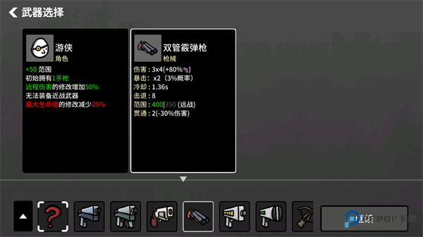 3、同时还可以选择初始可以携带的武器。