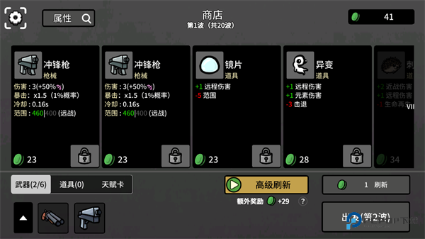 1.短波次设计:每局游戏由20波敌人构成,每波敌人的攻击持续20-90秒,玩家需要在限定时间内清理所有怪物、拾取掉落资源,随后进入商店阶段强化角色。这种“战斗-休整”的循环模式,既降低了操作疲劳感,又强化了策略思考的空间,适配碎片化游玩。