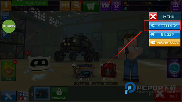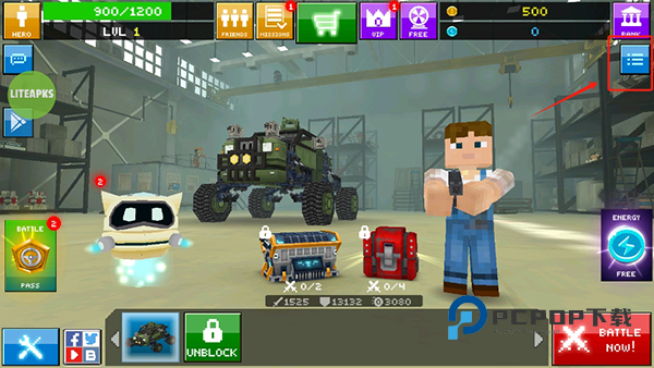 1、进入像素战车游戏首页,点击菜单
