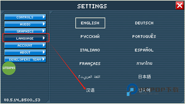 3、点击language,选择汉语