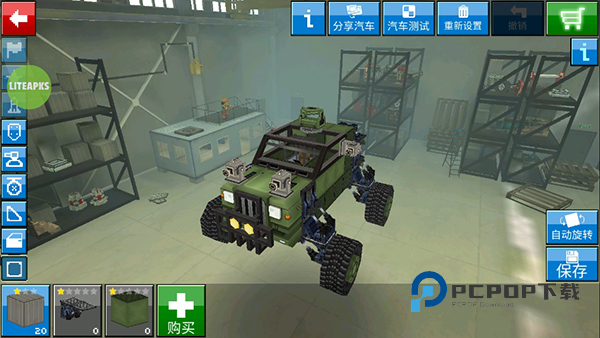 1、玩家可通过收集方块、武器和配件,自由组装个性化战车