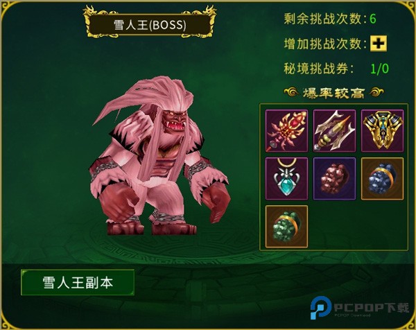 除外野外的危险,少侠们还主动可前往“副本”进行挑战!进入门槛更高难度更大,但是对应,获取“神品”装备稀有材料的概率也越大!