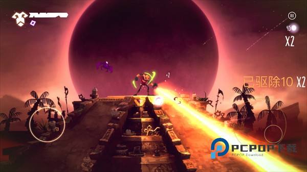 4、角色射出的光线对低等级的杂兵具有穿透能力,一次能消灭多个敌人,但中后期出现的高级敌人能够阻挡光线,对付起来要麻烦一些,这时候最好用咒术攻击辅助消灭靠近的敌人,否则很容因为受伤而导致连击中断,从而影响获得的分数。