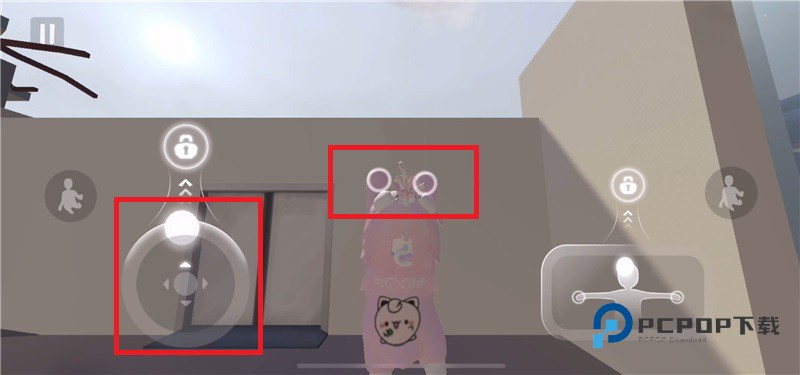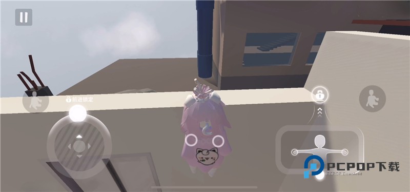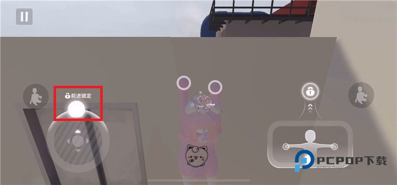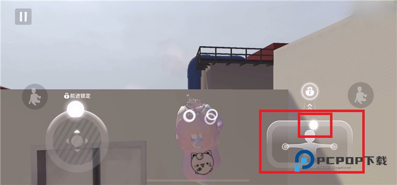 1、首先我们需要将双手举高,左边按钮固定住向前进。