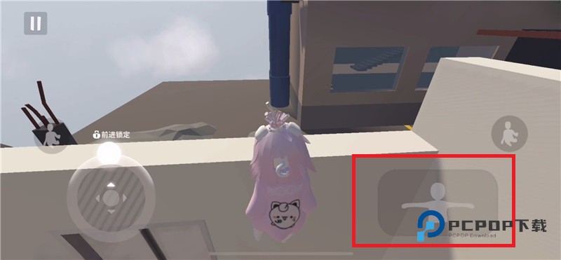 4、之后下拉视角撑起身子,需要注意的是不要等待完全撑起身体才松手,不然很容易失败!只要肩膀比手高就可以松开右手键位了。