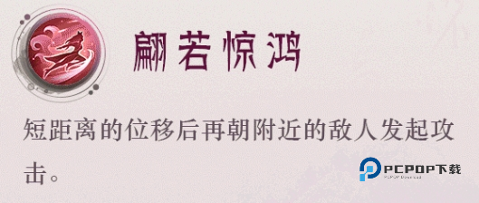 一技能:翩若惊鸿:短距离的位移后再朝附近的敌人发起攻击。