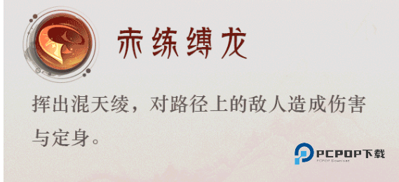 三技能:赤炼缚龙:挥出混天绫,对路径上的敌人造成伤害与定身。