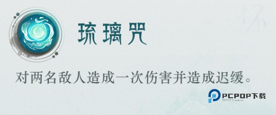 三技能:琉璃咒:对两名敌人造成一次伤害并造成迟缓。