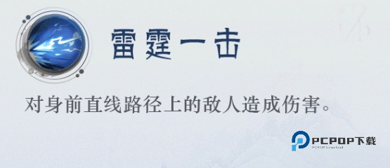 一技能:雷霆一击:对身前直线路径上的敌人造成伤害。