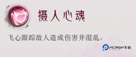 二技能:摄人心魂:飞心跟踪敌人造成伤害并混乱。
