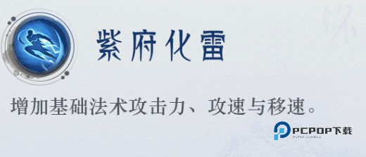 四技能:紫府化雷:增加基础法术攻击力、攻速与移速。