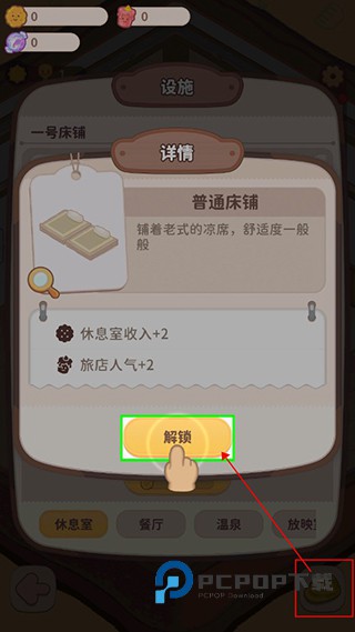 玩家之后可以进入客房,点击右下角的安全帽,进入设施页面,点击普通床铺,再点击解锁即可建造床铺,尽量解锁多一点的床铺。
