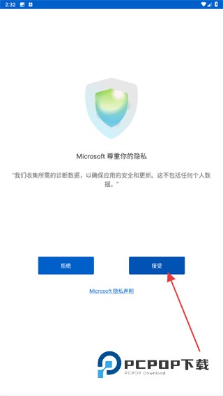 1、打开微软身份验证码APP,进入时会弹出隐私政策,点击接受的按钮。