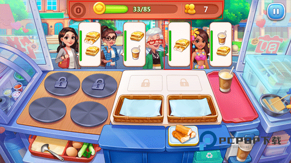 2、根据客人的口味做出她们喜欢吃的煎饼,不过需要注意的是旁边绿色的进度条,这表示客人的忍耐值,当忍耐值达到红色时,就表示客人已经很生气了。