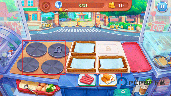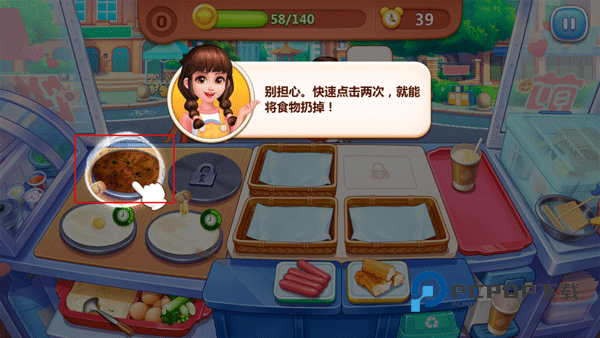 5、如果不小心把煎饼烧焦了,也不用担心,快速点击两次就能扔掉食物。