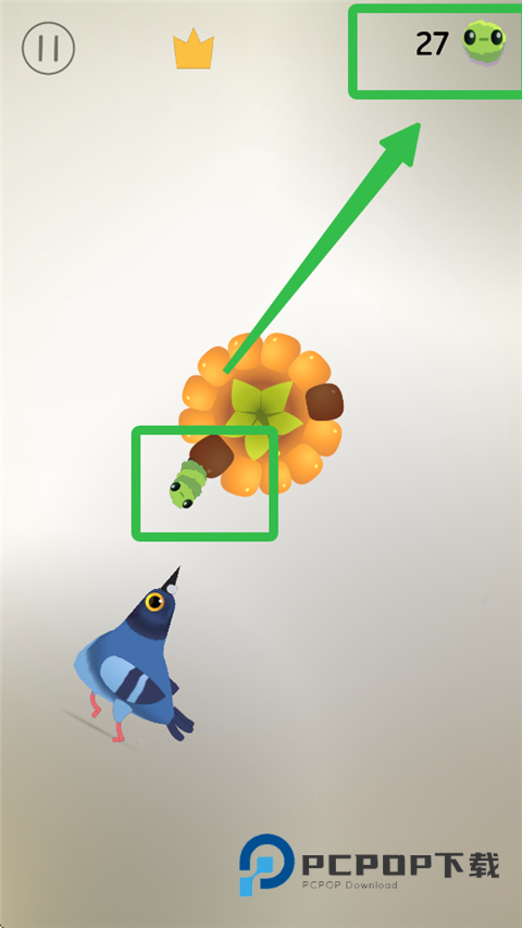1、进入Pigeon Pop疯狂的鸽子游戏,点击啄食正常颜色的玉米粒,避开坏掉的玉米粒。