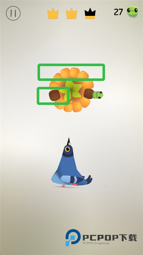疯狂的鸽子(Pigeon Pop)是一款抖音平台上的热门休闲魔性手游,玩家需要控制鸽子啄食玉米粒、豌豆等美食以及苍蝇等害虫,灵活避开坏的美食以及蜜蜂等益虫。游戏拥有丰富鸟类角色,如松鸦、鹰、渡鸦、鹧鸪、几维鸟等,玩家可用在关卡中吃下的虫子兑换,在关卡通过或失败时,鸽子们还将跳起魔性十足的舞蹈,搭配动感BGM,趣味十足。随着关卡推进,难度增大,玩家需要啄食加速、暂停、清除坏玉米等特殊道具帮助通关,在限定时间内吃掉正常美食,越快完成可获得最高三星的评级。