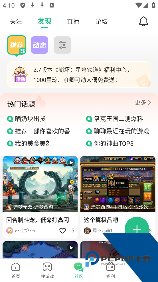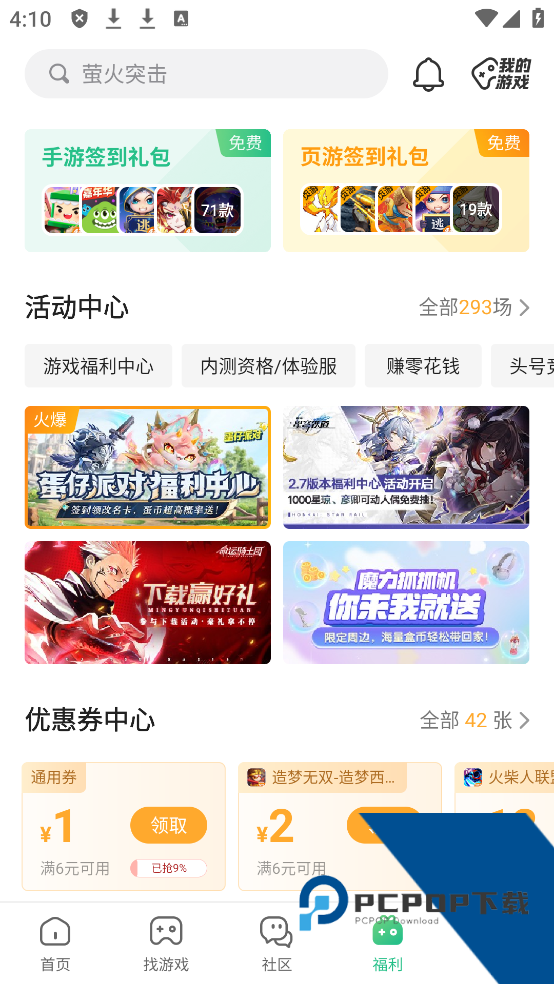 5、最后,点击福利,分为手游专区与电脑专区,这里都是有关游戏的福利。
