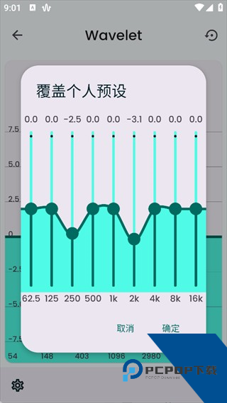 4、点击“图形均衡器”进入频率调节界面,可看到从54Hz到8103Hz的多频段调节滑块。