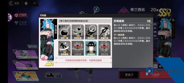 选定完喜欢的武器之后,这次测试基本就一路走到底了,一定要慎重选择。弗兰西丝如果没抽到的话建议去换一把,0星就是完全体。拿到防毒面具之后就拥有了无限盾,不过这个有持续时间,应该是10秒,没有详细的数过。后面再拿一个定时服用,自动给盾。
