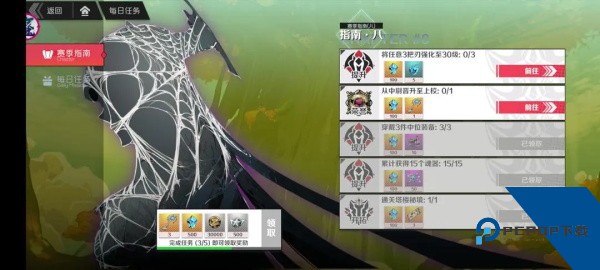 都准备好了之后就开始做任务,优先做指南任务,这个给经验值。每次副本首通也会给经验值(除了无尽模式)。经验对我们很重要,因为副本都需要到达多少的军衔之后开启。探索副本解锁之后尽量把体力清一下。