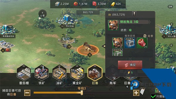 当人类军队与科技巨兽相结合,将解锁突破想象的全新战争模式!各式近战、远程、装甲巨兽任由你召唤上场,拥有强悍突破能力的霸王龙,极速突袭的迅猛龙,移动的堡垒巨龟,远程压制的强火力长颈龙,与数十种人类兵种自由搭配,针对不同的战场局势投入不同的巨兽和部队,运筹帷幄,制敌先机!