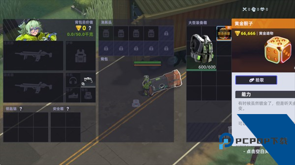 1、玩家可以通过地图中高亮处箱子搜集物资,点击右侧栏物品放入背包中。
