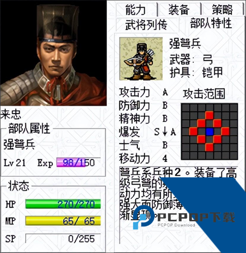 -弓兵→长弓兵→神射手(ABBBS):远距攻击,容易射出致命的一箭,克骑乘部队和戟兵,怕步兵系。使用弓。
