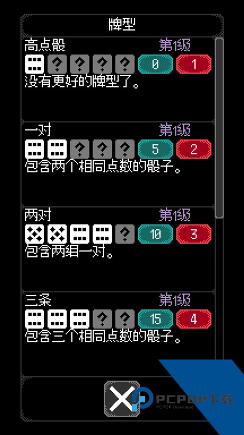 3、玩家需通过掷骰子来构建牌组,不同的牌型获得的分数也不同;