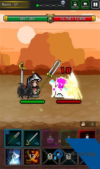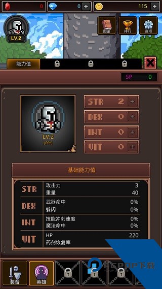 1、卡通休闲的像素式游戏画风,在地牢世界不断冒险挑战,提高等级战力。