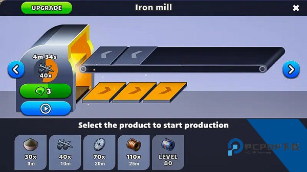 您从冶炼厂开始(采用矿石和煤炭来制造钢铁)。随着等级的提高,可以使用的工厂也会越来越多。例如,锯木厂一开始生产木材,后来可以生产桶、胶合板和托盘。