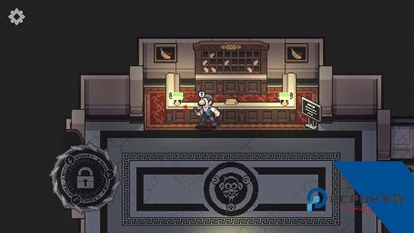 5、首先进入酒店前台,感叹号处可以获取信息,靠近点击右下角的手印即可查看、拾取等。