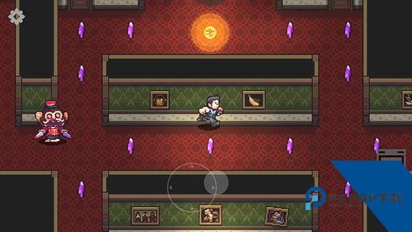 6、一直向右走到尽头乘坐电梯上二楼,收集所有散落的紫水晶,但是要注意会有猴子怪物追赶你,不止一只哦,你需要灵活的走位,抓住时机寻找藏身之处,躲避它们的追杀!