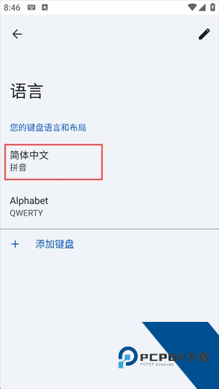 4、设置完成后,如果你想改键盘、添加键盘的话可以点击设置进入语言选择虚拟键盘【Gboard】进入