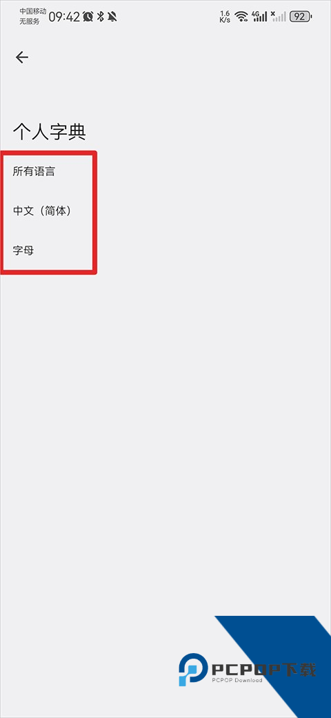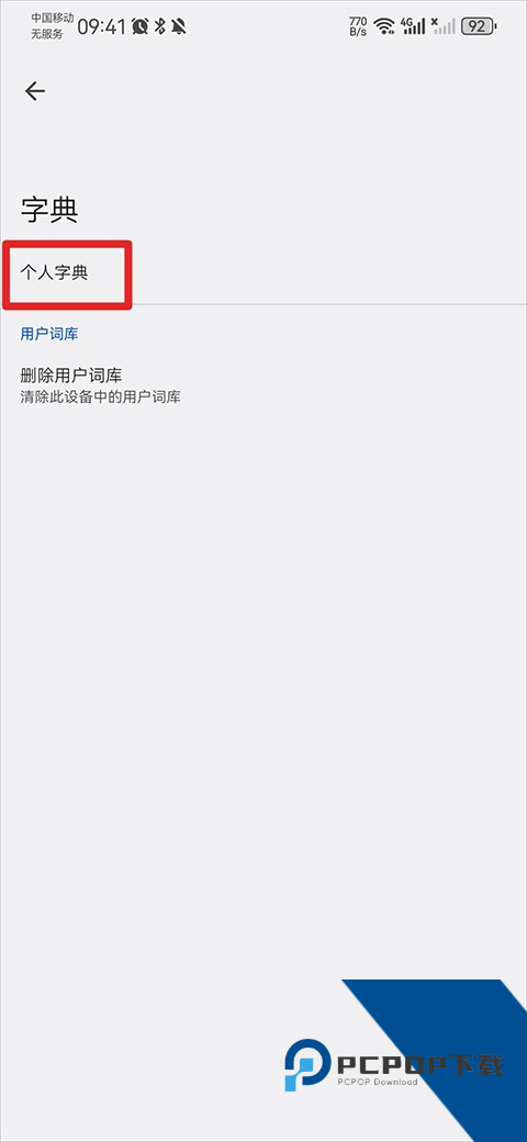 3、进入后点击个人字典。