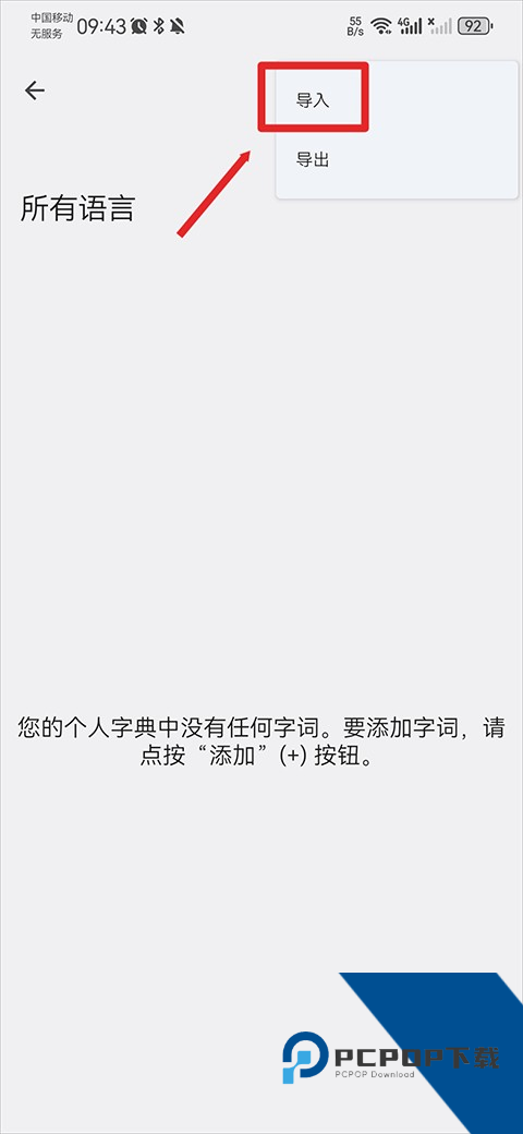 6、最后选择导入并在手机文件中选择你要带入的词库文件进行导入即可。