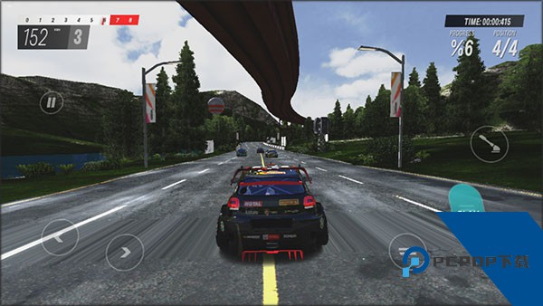 3、进入后,左边按键控制车子的左右移动,右边是加速和刹车。