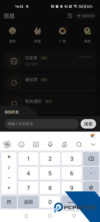 1、在当快下载安装好百变大侦探剧本杀,进入到主页面点击下方的“消息”;