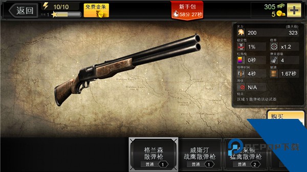 1、游戏开始前,首先你要拥有一把武器,你可以在武器商店中购买到步、冲锋、猎、手四种类型的支。四种支各有各的特色,游戏一开始,我们要用的是步。