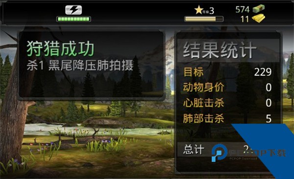 8.猎杀成功后,会出现结果统计。任务完成的金钱数,动物身价数,击杀部位数的总计为你的金钱数。
