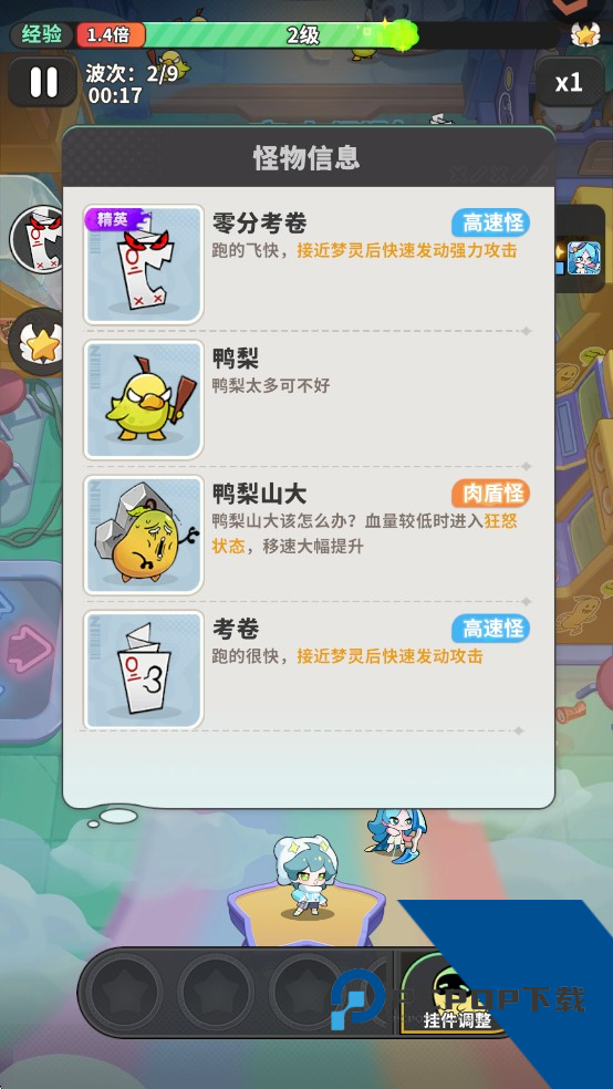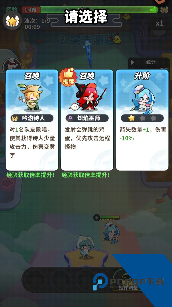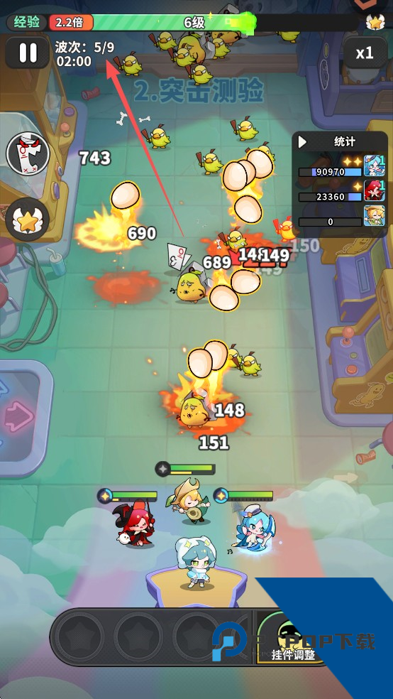 8、通过查看左上角的信息,可以了解对局的进度,在boss战到来之前尽快提升精灵的伤害。