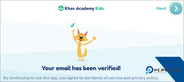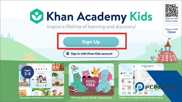 1、首先,打开khankids安卓版,在这里找到并点击红色方框内的按钮;
