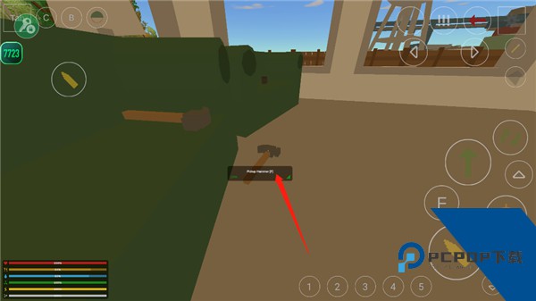7、用户拾取的物品下方会显示并标记出来,玩家只需点击标记的序号,即可使用,如2号的铁锤,之后就需要玩家自己探索啦。