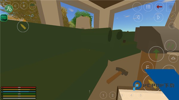 1、玩家可以利用地图中的木头、土、水,来建造一个生活基地。