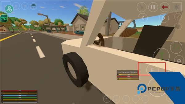 3、进入游戏后,我们可以探索周围建筑,寻找你想要的资源,碰到可以拾取的东西,它会显示出来,玩家点击f即可拾取;