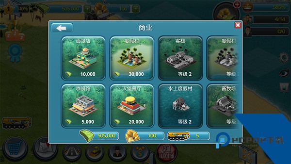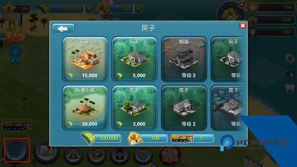 6、有了房子之后,再建造一座商业建筑来创造工作和赚钱,同样是点击购物车购买建筑。
