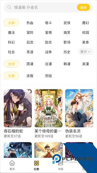漫画题材多,分类很详细,而且阅读流畅,加载速度极快
